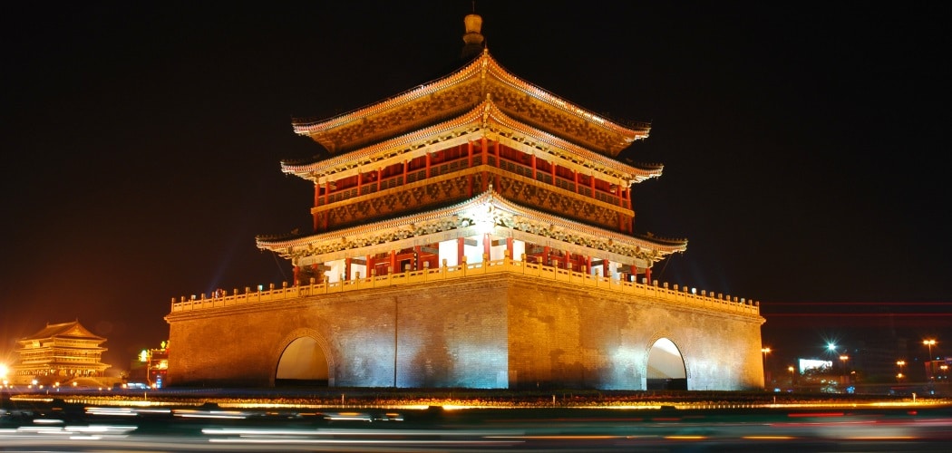 Traditionally, the Bell Tower marks the center of the city, its large iron bell punctuated the hours of life in Xi’an. The original tower was built in the late fourteenth century and rebuilt in 1739 under the Qing.