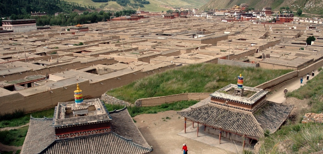 Founded in 1709, Labrang is the last of the six great monasteries built by the Gelugpa. Its founder establishes the lineage of Jamyang who will not stop developing the prestige of this center of Buddhist culture in China.Labrang is reputed to be the largest monastery outside Tibet. It currently has about 2000 monks is half less than its peak, due to the wars between local lords and the cultural revolution.It is an ideal place to immerse yourself in Tibetan culture and religion. Shortly after the Tibetan New Year, the Mönlam ceremony is held for many festivities, and the giant thanka on the hill facing the golden stupa unfolds.The central part of the monastery includes a museum, various halls devoted to the deities, a huge prayer room that is usually discovered during a guided tour conducted by a monk (in English). The rest of the monastery consists of six colleges of study of different sciences (esoterism, astronomy, medicine, Sanskrit, doctrine, geometry …), a small printing house, residences of the living Buddha and lamas, that of the monks and the golden stupa (receptacle of the ashes of the founder).You can also visit in the surroundings the grassy hills from the top of which we enjoys a beautiful sight on the whole of the monastery. A temple of the sect of the red caps, a nunnery and the Tibetan quarter.