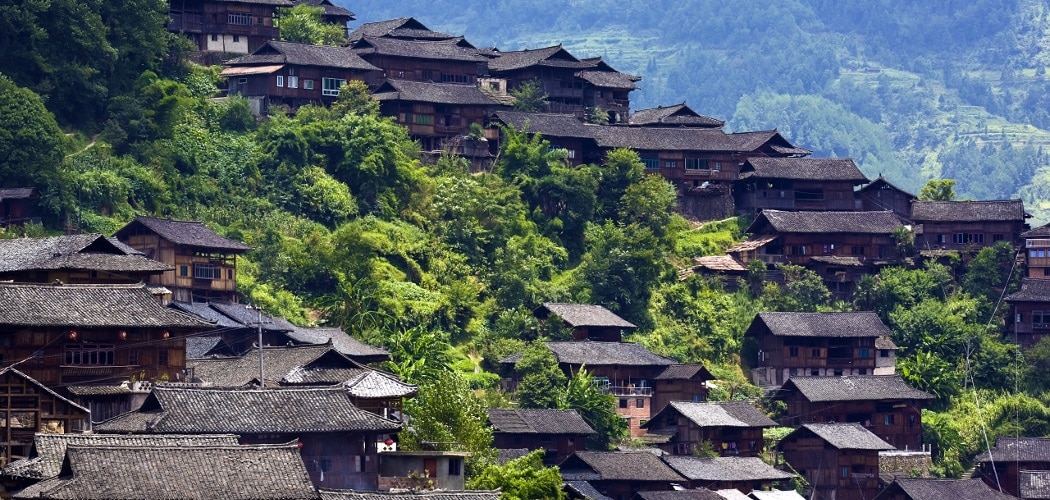 The charm of this small mountain village lies in its houses on stilts nestled against each other, but also in the colorful splendor of the festive costume nicknamed “miao feathered jacket of a hundred birds”.