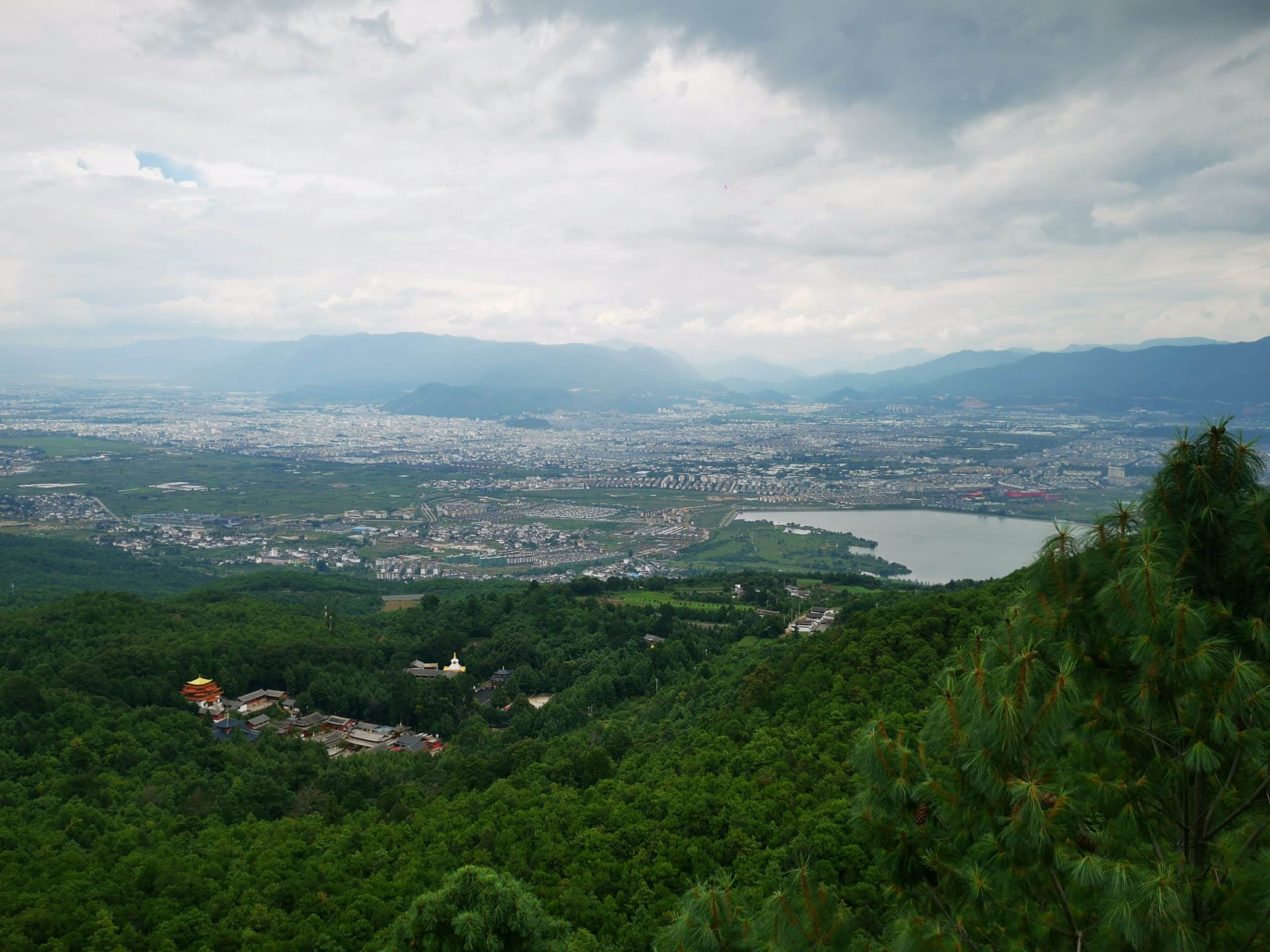 Panoramic views over Lijiang Valley and Jade Dragon Snow Mountain.