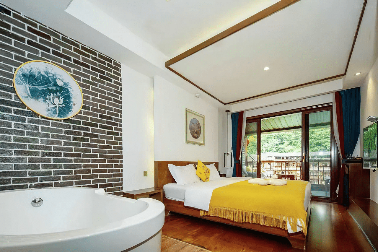 Some rooms have balconies with breathtaking views of the Tuojiang River and the bustling streets of the ancient city. The hostel also offers fine local cuisine and attentive hospitality, ideal for immersing yourself in Fenghuang’s fascinating culture and history.