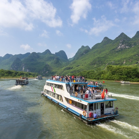 Beginning of a day without guide, with a walk in the district of the Green lake. Continuation possible on foot to Yuantong temple. Transfer to Kunming station for the fast train to Guilin (4h40 drive). Welcome by your new driver (without guide), then transfer to the village of Yangshuo. Installation at the River Lodge Hotel set back from the city on a hill and enjoying great views.