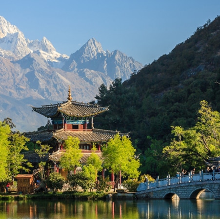 Day of discovery of the old city of Lijiang. Climb to Wangu Pagoda, for a 360 ° view of the city and its surroundings. Descent through the Mu Palace, then the Lijiang Market. Also make the walk just outside the old town towards the Black Dragon Pond Park. Discovery of the Dongba Museum. Overnight at Manty House.