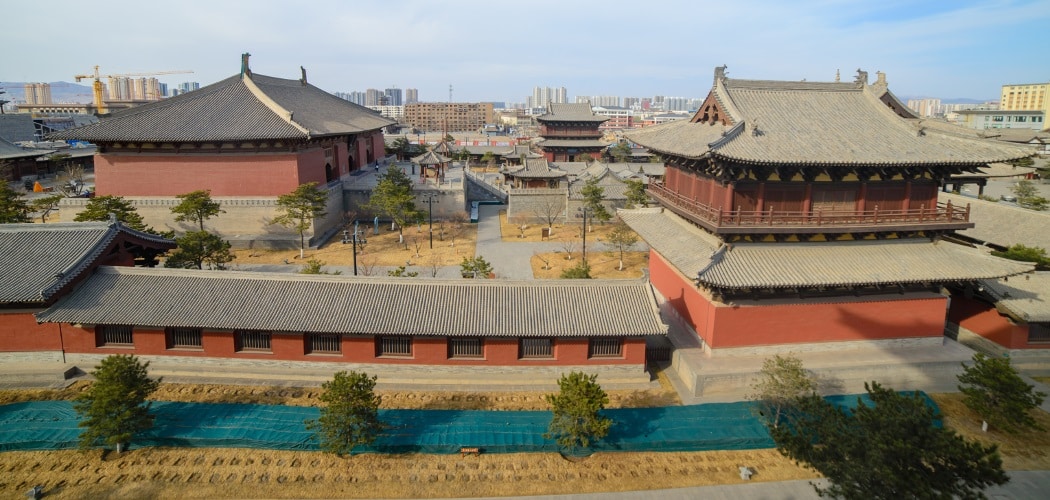 Founded in the 11th century under the Liao Dynasty, the original temple is divided into two distinct parts during the 16th century: the Temple of the High (Shang Huayan – 上华严) and the Lower Temple (Xia Huayan – 下华严). It is the largest and best preserved monastery created under this dynasty, it has undergone several renovations and enlargements. Note that it was reunified in 1963.In the lower monastery part, you will discover a library dating from the creation of the site in the 11th century and still home to many documents.It is in the high monastery section that the Mahavira Hall is located, destined for Buddhist worship and where are placed 5 statues of Buddhas surrounded by many other statues (soldiers, bodhisattvas …).The monastery still receives few visitors which makes it really enjoyable to visit during your trip to Datong.
