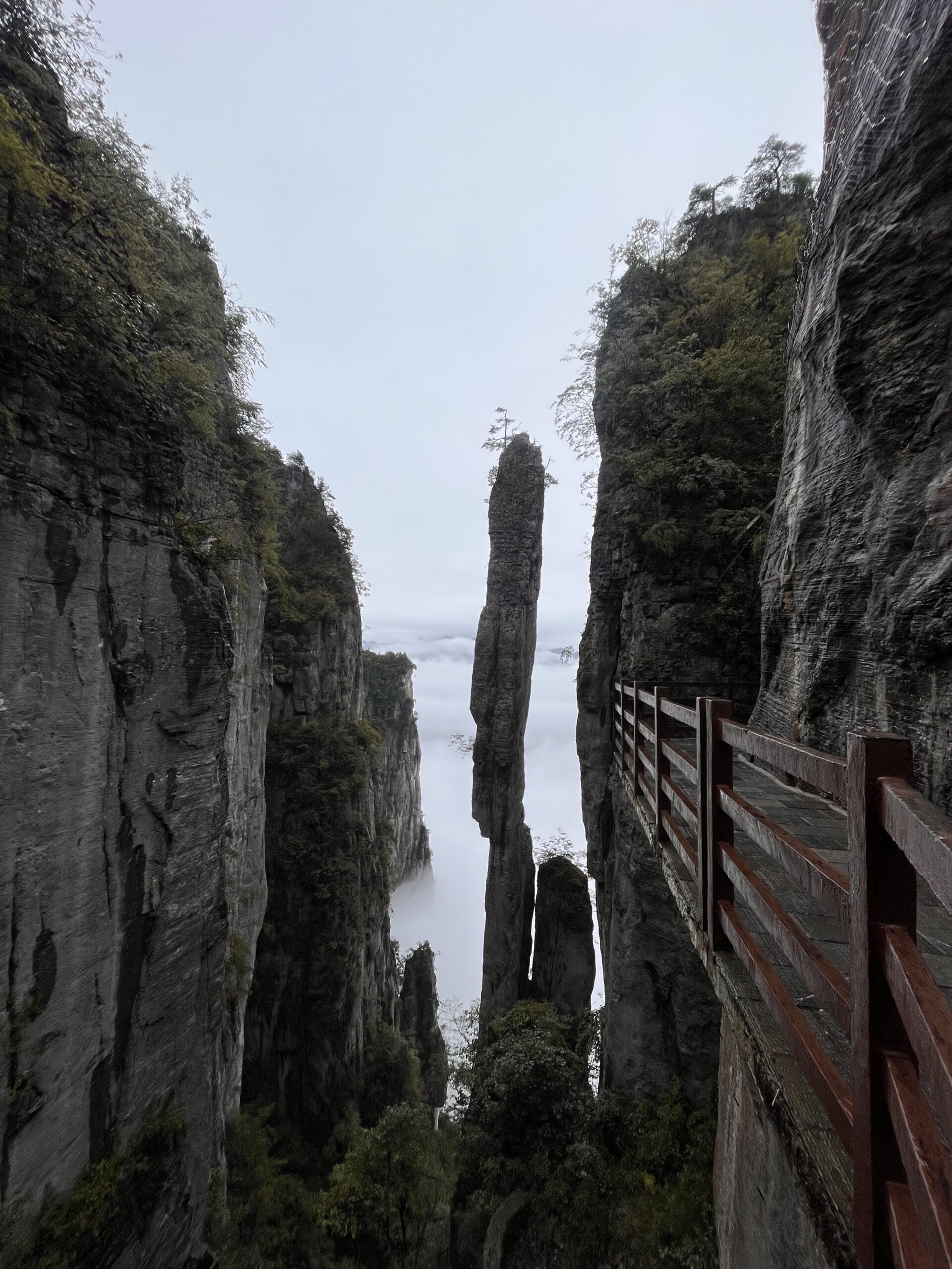 - Stronger sense of exposure: the cliff walkways and plank roads give a powerful feeling of height, similar to Tianmen’s glass paths.