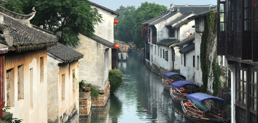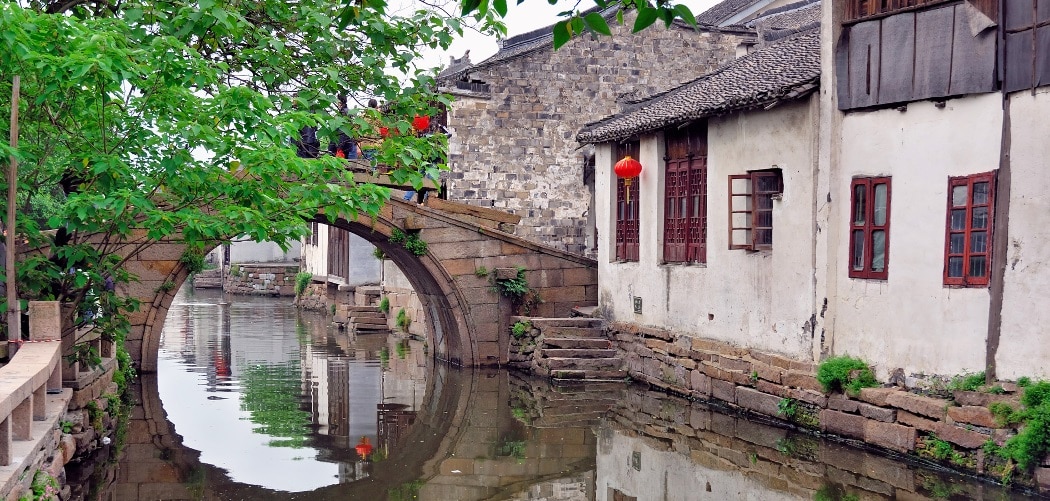 The village of Zhouzhuang, characterized by its beauty and simplicity, is located on Lake Dianshan, 1h30 from Shanghai, in Jiangsu province.Many rivers travel Zhouzhuang, so small stone bridges are in abundance. The double bridge, reminiscent of a key, also known as the “Bridge of the Key”, was built in the 16th century and overlooks the Yingzi and Nanbei rivers. The Fu’an Bridge, has four pavilions each with a restaurant unveiling a breathtaking view of the canal and boats.The village is also famous for its traditional houses, whitewashed walls and gray tiled roofs, aligned in shady alleys. Many of them are visited.The Shen House, more like a mansion than a house (2000m2), is recognized as the most typical construction of the Ming and Qing era in Zhouzhuang. Zhang’s home also has a dazzling Chinese architecture. There is also the Mi Pavilion, very quiet, unveils documents and wax models who remember artists or writers.You can also visit the Chengxu Taoist Temple, or the Zhouzhuang Museum (objects of daily life of the Qing Dynasty).This charming little village has a truly peaceful atmosphere and attracts many artists who find inspiration. Will you be seduced?