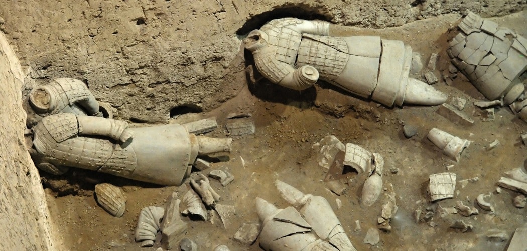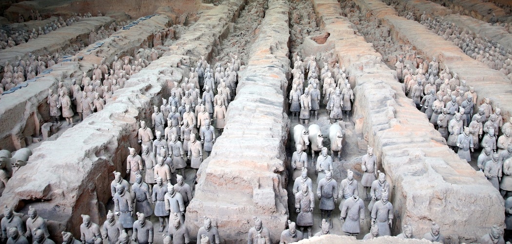 It was only in 1974 that peasants unintentionally uncovered this staggering buried army which is undoubtedly a major discovery of twentieth century archeology and an important contribution to the understanding of Chinese history.This army was supposed to accompany Emperor Qin Shihuang on his journey to the afterlife. His tomb is 1.5 km from the site of the buried army.Terracotta warriors and horses face east, in rectangular formation, arranged according to the strict rules of an ancient book on the art of war. The vanguard is made up of crossbowmen and archers, followed by a troop with horse-drawn carriages (wooden carts have disintegrated for a long time).Each face has a particular morphology, a proper expression. It is supposed that the sculptors took inspiration from their companions as models.Some people said they were disappointed, they were expecting something more … grandiose maybe?!? It is true that of the 8,000 warriors and horses that have been recorded to date, only a part is visible to the public. However, the sight of this gigantic life-size army that has withstood more than 2000 years under the ground remains impressive.