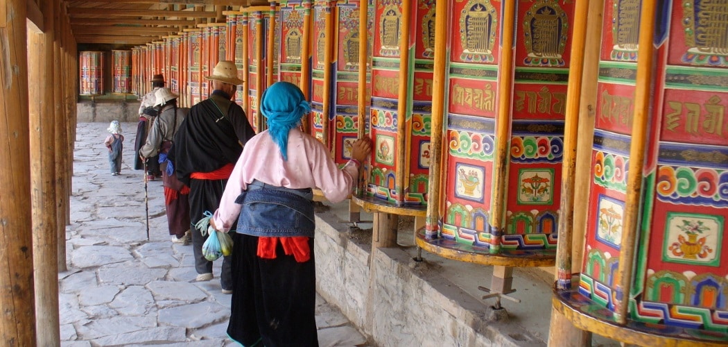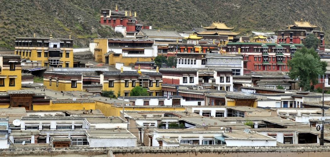 Founded in 1709, Labrang is the last of the six great monasteries built by the Gelugpa. Its founder establishes the lineage of Jamyang who will not stop developing the prestige of this center of Buddhist culture in China.Labrang is reputed to be the largest monastery outside Tibet. It currently has about 2000 monks is half less than its peak, due to the wars between local lords and the cultural revolution.It is an ideal place to immerse yourself in Tibetan culture and religion. Shortly after the Tibetan New Year, the Mönlam ceremony is held for many festivities, and the giant thanka on the hill facing the golden stupa unfolds.The central part of the monastery includes a museum, various halls devoted to the deities, a huge prayer room that is usually discovered during a guided tour conducted by a monk (in English). The rest of the monastery consists of six colleges of study of different sciences (esoterism, astronomy, medicine, Sanskrit, doctrine, geometry …), a small printing house, residences of the living Buddha and lamas, that of the monks and the golden stupa (receptacle of the ashes of the founder).You can also visit in the surroundings the grassy hills from the top of which we enjoys a beautiful sight on the whole of the monastery. A temple of the sect of the red caps, a nunnery and the Tibetan quarter.