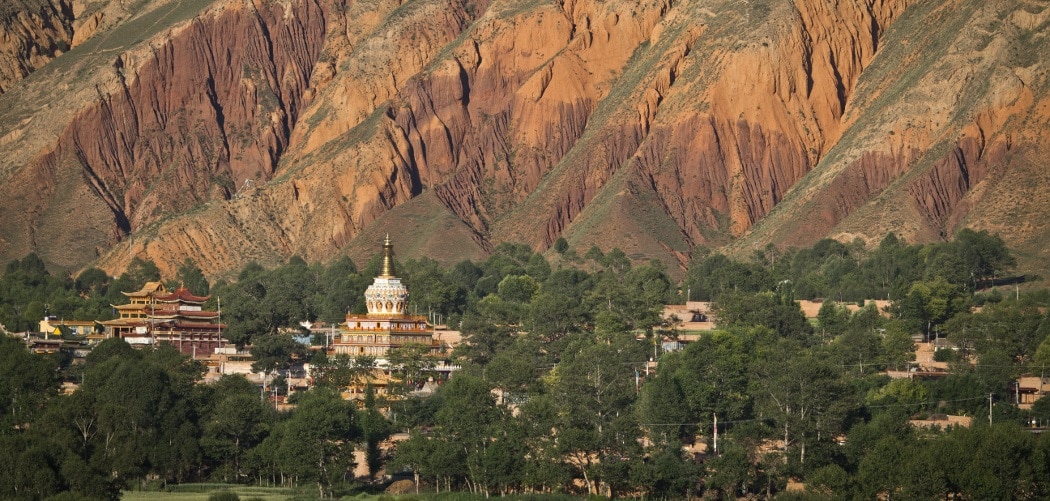 Xiahe District is located at 2900 m altitude in Gansu Province. Originally, the district included about sixty monasteries. Only three monasteries have survived the events of recent decades, including the best known, that of Labrang.