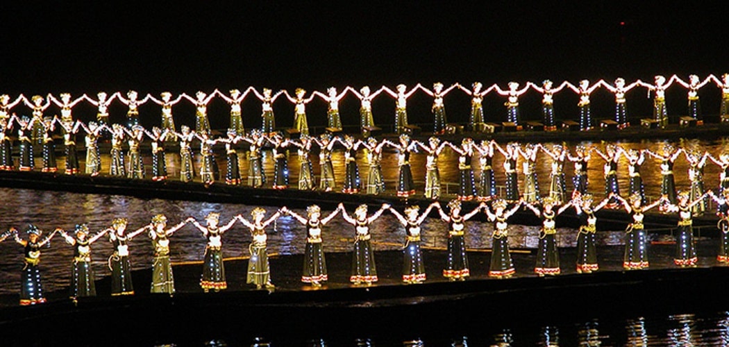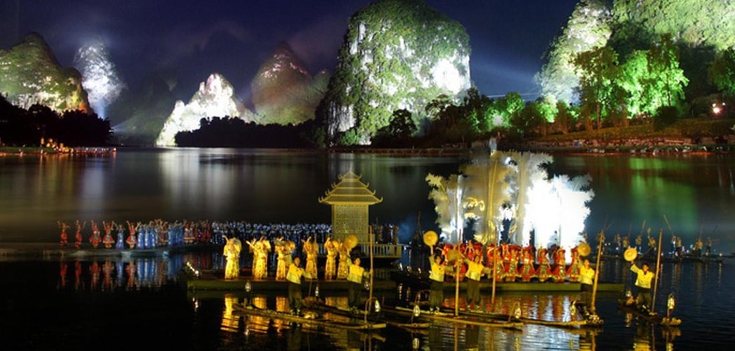 The story of the sound and light show Liu San Jie is based on a very popular Chinese musical, was staged by Chinese filmmaker Zhang Yimou. The show is 70 minutes long and includes more than 600 extras, including the Zhuang, Miao and Yao minorities. The different paintings are very well worth, by games of lights and smoke, the phantasmagoric setting of the karst mountains of Yangshuo.The sound and light show Liu San Jie takes place once a day in the low season (20: 00-21: 10, and twice a day during the high season: one session at 8:00 pm, one session at 10:00 pm) The sound and light show Liu San Jie takes place 4kms outside the city of Yangshuo.