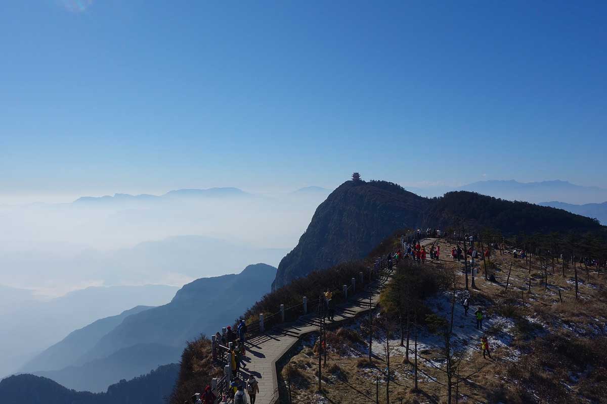 In the morning, departure by shuttle bus to Leidongping Station (2-hour mountain drive), arrival at the Golden Summit at 3,077 meters altitude; ascent and descent by cable car. Visit Huazang Temple and the great statue of Puxian. The great bronze statue of the Bodhisattva Puxian is 48 meters high and weighs 660 tonnes. Time permitting, visit Baoguo Temple. Located at the foot of Mount Emei, this temple was built in 1573 during the Ming Dynasty (1368–1644) and rebuilt during the Qing Dynasty (1644–1911). The main buildings of the temple lean against the mountainside. The temple houses a porcelain statue of the Bodhisattva Puxian, 3.5 meters high and made in 1415. The temple’s inner garden is magnificent, with flowers, rare plants, and bonsai. Return to the hotel. Overnight: Holiday Inn Express Emei Mountain.