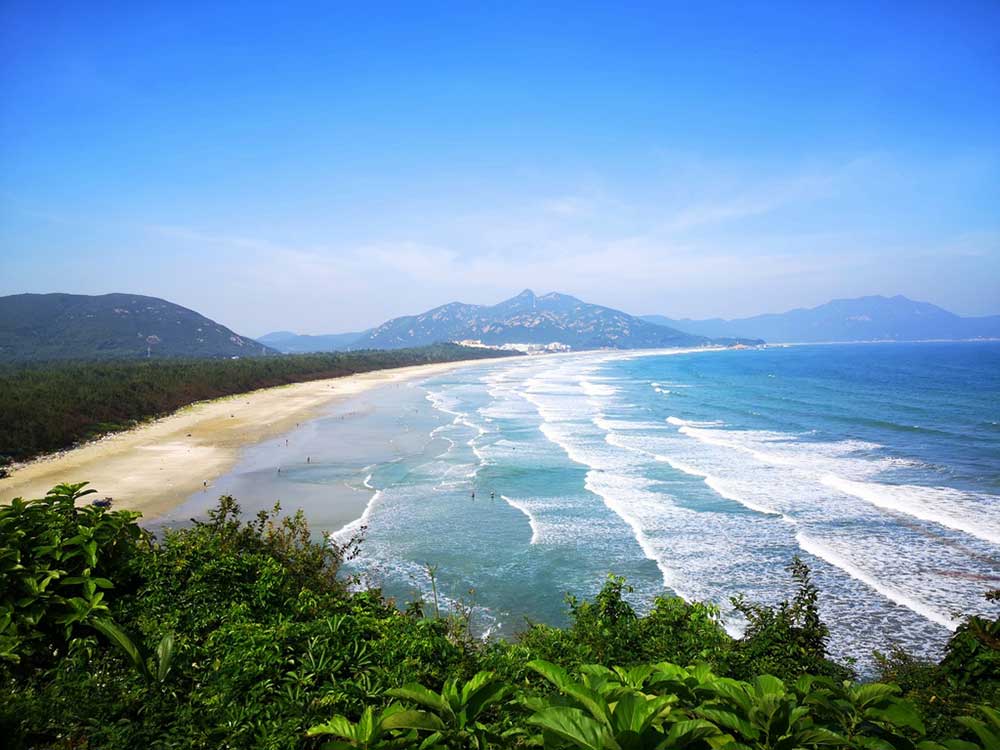 The island extends in length, on a North-South axis of 23km. It is mainly mountainous and densely wooded, and has a central plain dotted with rice fields. The 217km coastline is rugged, with several bays, coves, small fishing ports and some beautiful beaches of fine sand and clear water. The most beautiful beach is on the East coast at Faishan Bay, 6km long. It is here, at the “flying sand” beach and in its tourist resort, that all the hotels, restaurants and seaside activities are concentrated. On site you can rent scooters, electric bikes, or a vehicle with driver to travel around the island… Note however that outside the high season and Chinese holidays some activities may not be available and the place may seem a little sleepy (on the other hand you will gain in tranquility).