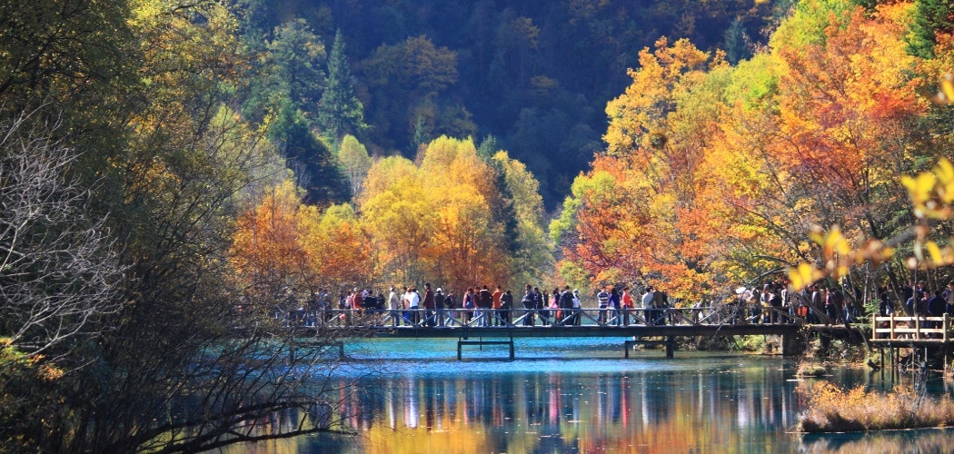 Located on one of the highest plateaus in the world between the Sichuan Basin and Qinghai Tibetan Plateau, the Jiuzhaigou Nature Reserve is renowned for the beauty of its landscapes. Waterfalls and karst peaks mix with local flora and fauna. The valley is the perfect place to see giant pandas and golden monkeys with pug noses. Its altitude varies between 2,000 and 4,000 m and its area covers 72,000 hectares. Tourism has developed since the mid-1980s and Jiuzhaigou is now easily accessible. Chengdu and Jiuzhaigou are connected by plane and train.The panorama in Jiuzhaigou is among the most beautiful in all of China. The place is picturesque to perfection. We discover a still wild nature where the modern man has never been able to put his mark. Autumn is probably the most pleasant season to walk around the reserve. The contrast of colors is so surprising between the blue of alpine lakes and the yellow-orange colors of the leaves of trees. Some places are also sacred by the Tibetan and Qiang people. This is the reason why many legends are told all around this park.