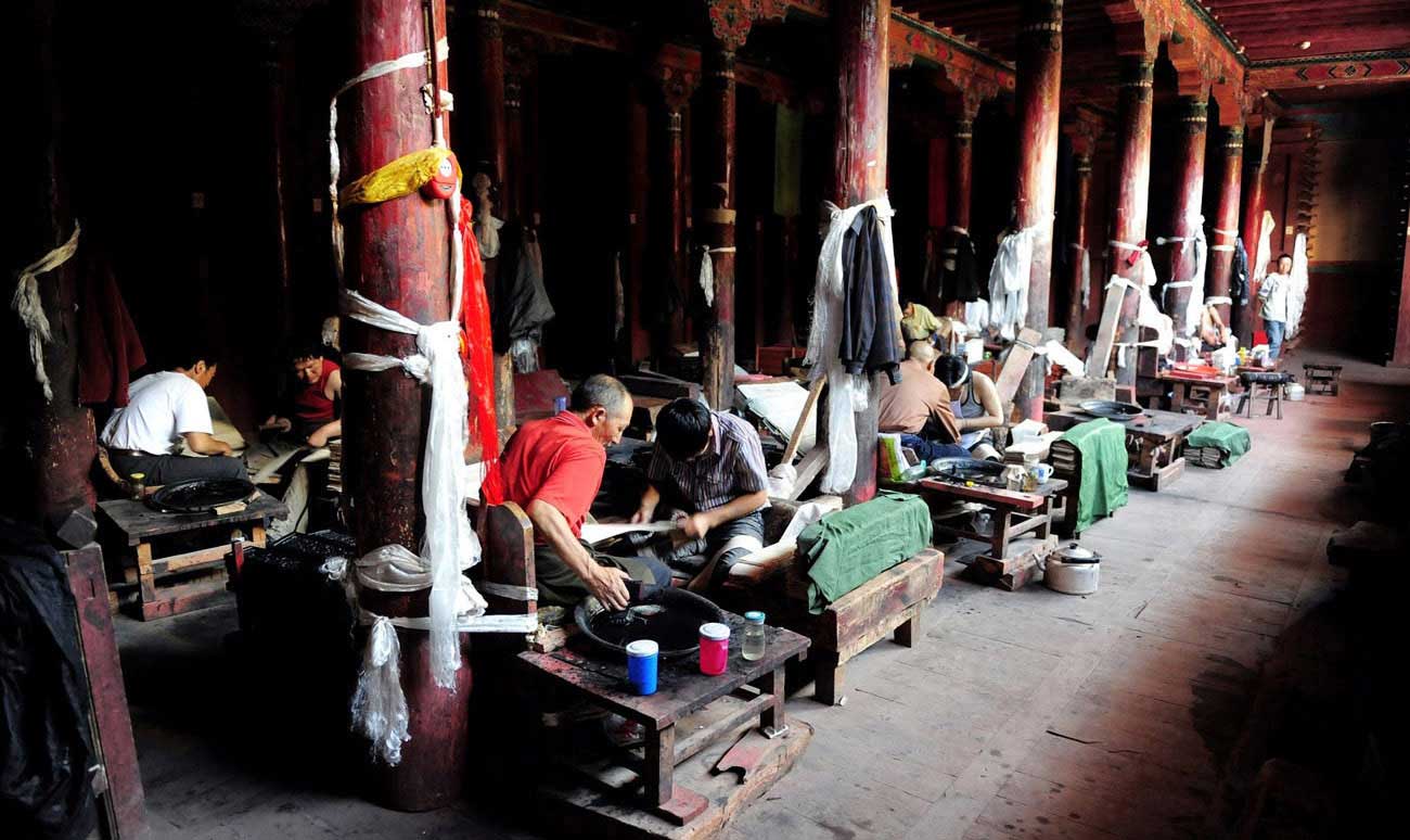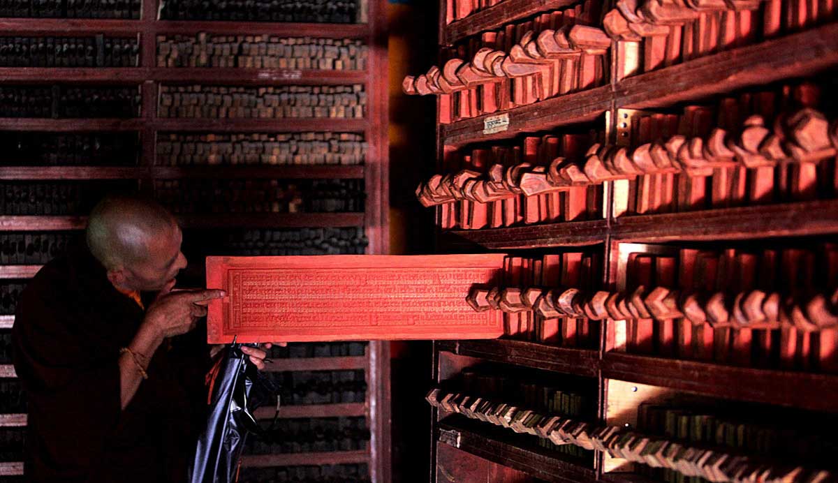 You will discover at the printing press (Bakong in Tibetan) all the steps necessary for the realization of sacred Buddhist texts. Built around the middle of the 18th century, it would house 290 thousand wooden boards each corresponding to a page of sacred text. The speed of printers working in pairs allows them to achieve 100 pages per minute.