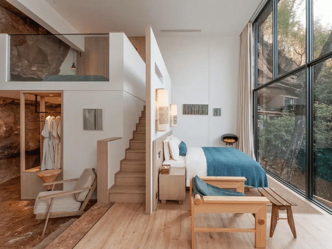 In a peaceful setting surrounded by mountains and rivers, Jianglu Yalugu Hotel offers 30 refined rooms and suites, combining traditional architecture with modern comforts, with balconies offering breathtaking views of the surrounding countryside.