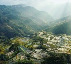 Enjoy breakfast overlooking the rice paddies, often bathed in morning mist, for a mystical, relaxing atmosphere. You will then go to the local market (the location varies according to the lunar calendar). Here you can meet the Yi and Hani minorities still wearing their traditional costumes. This afternoon, it’s a 2 to 3-hour walk through beautiful landscapes of rice terraces. You’ll pass through some picturesque little villages. Arrive at the hotel, and take a short transfer to the viewpoint over the spectacular rice terraces at Bada for sunset.