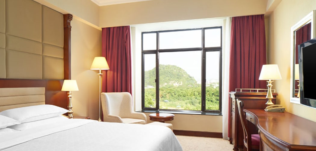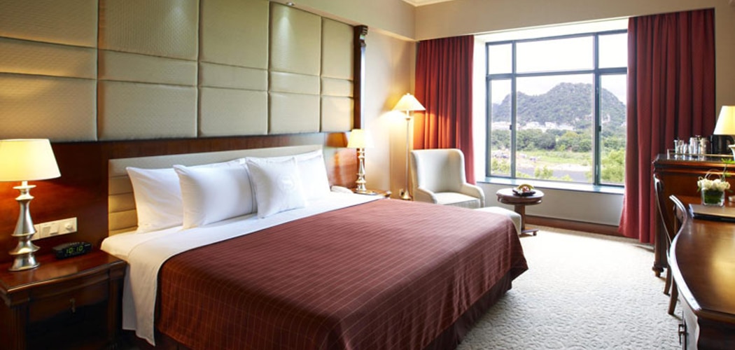 In the heart of this enchanting city, the Sheraton Guilin Hotel is ideally located on the banks of the Li River. With its steep limestone cliffs, deep caves and verdant rice fields, Guilin has inspired Chinese poets and artists for centuries. Now, thanks to a complete renovation, the hotel is as beautiful as the landscapes that surround it. The guest rooms, restaurant and lobby have been redesigned for your comfort. Take refuge in one of the 408 guest rooms, including 17 suites. Relax and unwind as you watch your favorite TV shows on the flat-screen TV with cable channels, order room service or surf the web with high-speed Internet access. Finally, get a great night’s sleep in the incredibly comfortable Sheraton Sweet Sleeper™ Bed. Whether you’re exploring the city, cruising the majestic Li River or simply taking a stroll, let the concierge help you plan your activities. Take a refreshing dip in the pool, enjoy a workout in the fitness centre or play nine holes on the nearby golf course.