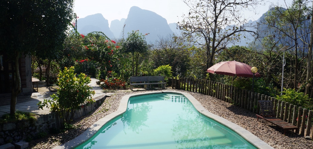 Located on the heights of the left bank of the Li River, the Riverside Retreat offers a unique panorama of Yangshuo and the karst hills that surround it. The place, at the end of the road, is surrounded by wild vegetation and orchards, and yet you are only a 10-minute walk from the city (if you take a raft to cross the river). In this haven of peace you can enjoy the small freshwater swimming pool and the pleasant sloping garden. The rooms are new, spacious, sober and bright, and some have a balcony ideal for admiring the sunsets over the city. Beautiful view also from the large terrace equipped with a bar, where meals are served (Chinese and Western cuisine). Family atmosphere and warm welcome from Shelly, the owner, and her staff (Kate), who will be happy to guide you in your visits. Highlights of the Riverside Retreat Hotel in Yangshuo: the setting with a breathtaking view and the calm while being close to the city. Relaxed atmosphere. The swimming pool (rare in Yangshuo). Good value for money.