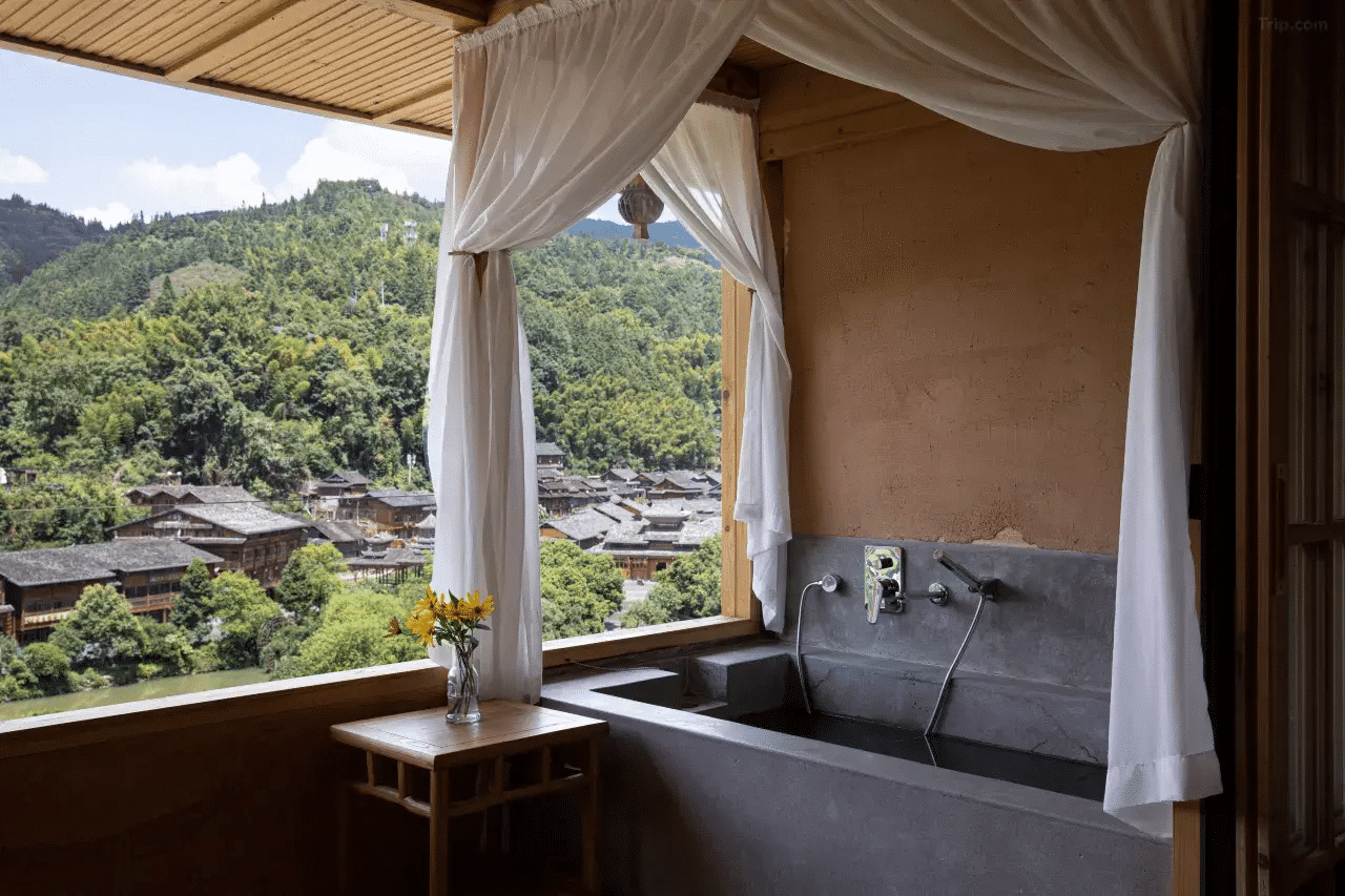 The hotel offers a variety of modern and well-equipped rooms and suites, many with stunning views of the surrounding Dong village. Options include Ping’an Rooms with panoramic bathtubs and 180° village views, Leisure Dong Village View Twin Rooms, and Happy Rooms with balconies and private hot springs. Rooms are equipped with Dyson hairdryers and smart toilets, as well as free Wi-Fi.