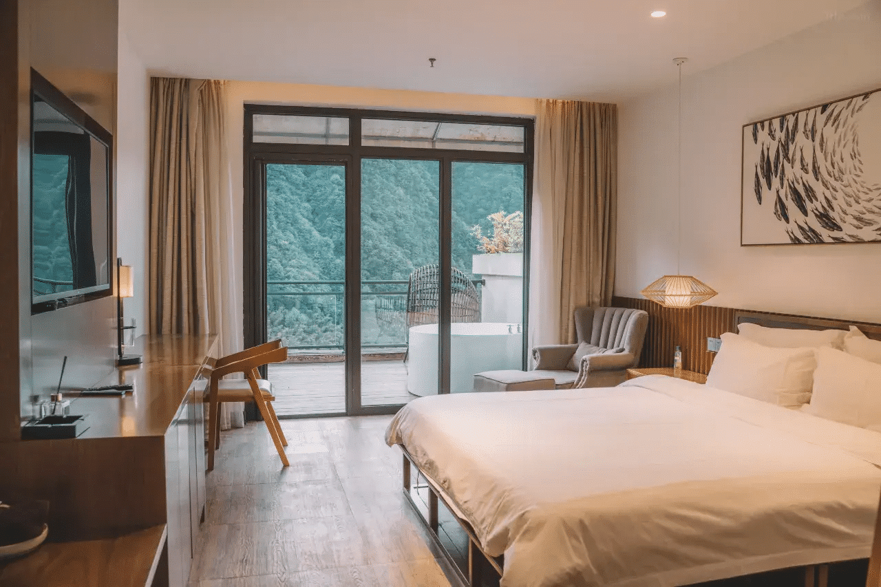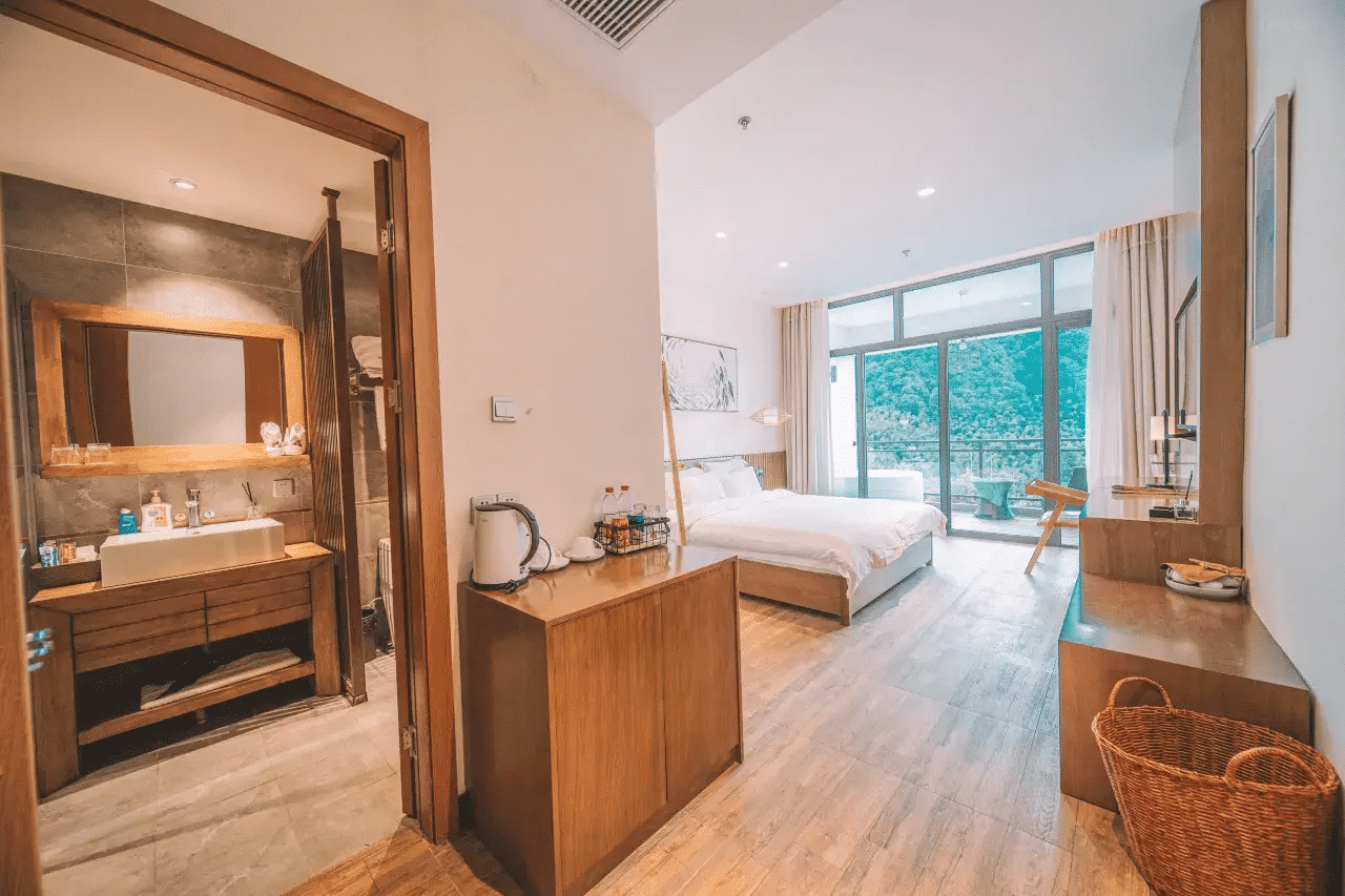 Nvue Resorts offers elegant and comfortable rooms and suites, designed to provide a sense of both sophistication and serenity. The interiors combine modern style with subtle elements of local culture, and most rooms boast panoramic views of Zhangjiajie’s mountains. Travelers will appreciate their generous size, premium bedding, modern bathrooms, and thoughtful amenities, making them ideal for a relaxing getaway, whether as a couple, with family, or on a longer journey.