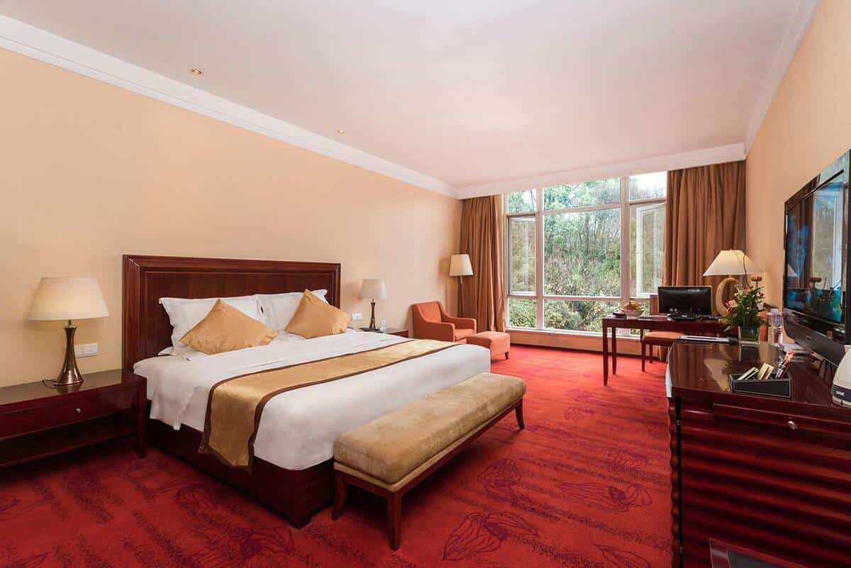 You will find about 500 rooms in the hotel, each well equipped, may it be with AC, refrigerator, and bathrooms facilities. Hongzhushan is one of the region’s top resort destination, notably thanks to its comfy rooms with modern decoration and creamy colors, rooms in which you will be able to drink your morning coffee or tea on the balcony while enjoying the surrounding landscapes.